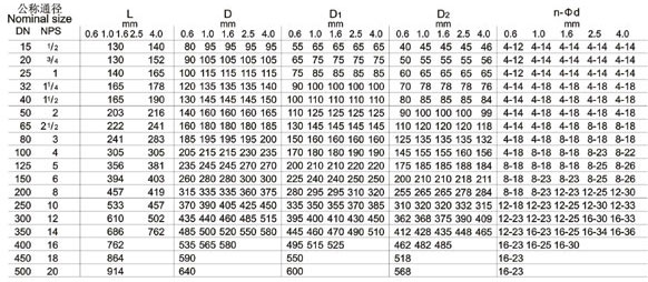 法蘭連接尺寸:JB78、JB79、GB、HG、SH